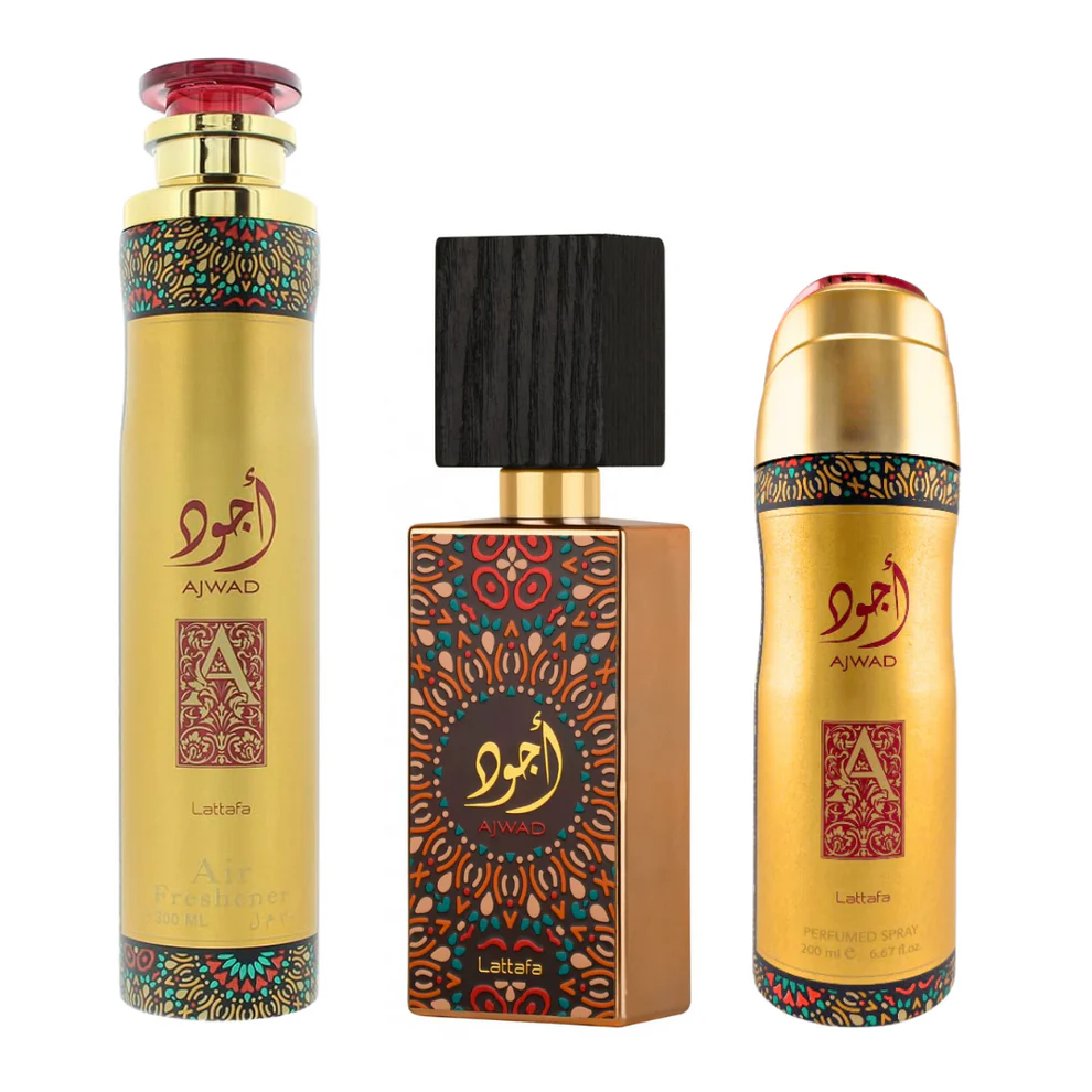 - Ajwad Deodorant Spray: En elegant og praktisk deodorant som gir deg en frisk følelse og den ikoniske Ajwad-duften hele dagen.