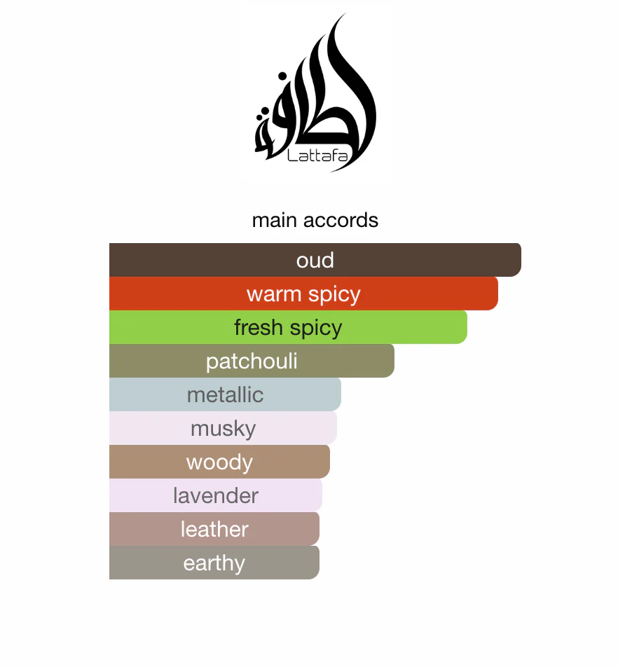 base notes are Agarwood (Oud), Patchouli and Musk.