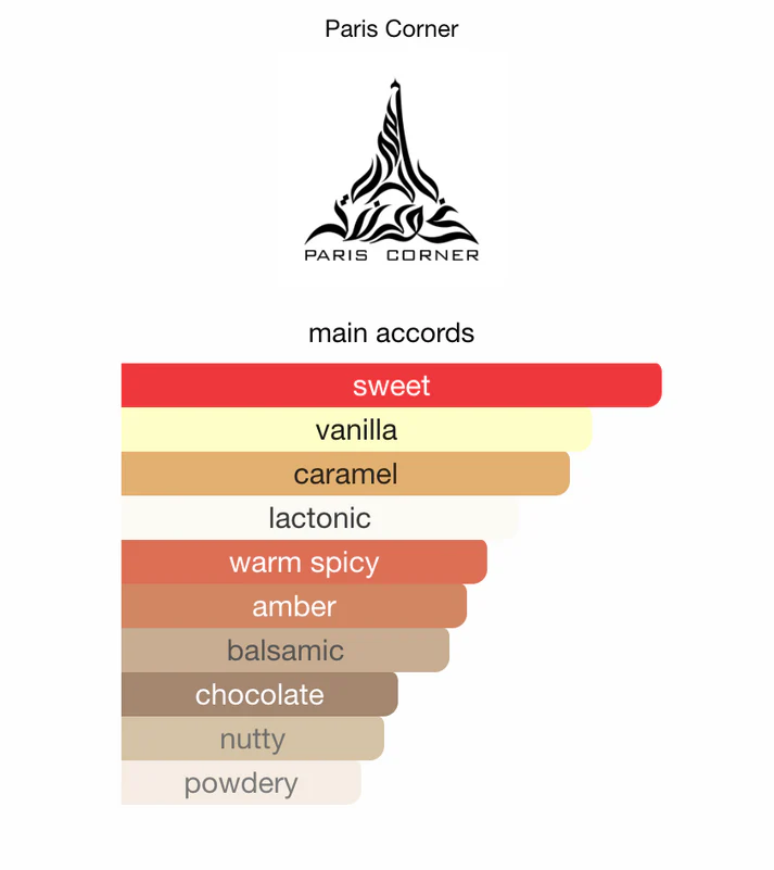 En søt og deilig duft som oser av kos og nytelse. Åpner med varme toner av popcorn og smør, etterfulgt av kastanje, sjokolade og harpiks. Basen er kremet og fristende med karamell, vanilje og brunt sukker. Perfekt for deg som elsker gourmande dufter med et hint av luksus.