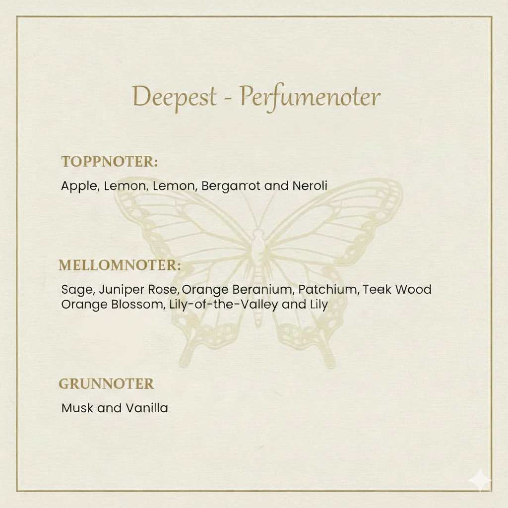 Base-notene sikrer en minneverdig og omsluttende avslutning. En varm og kremet sammensetning av søt vanilje og myk moskus fester seg til huden og varer i timevis. Deepest Desire er perfekt for dem som ønsker en duft som etterlater et inntrykk av lidenskap og luksus.